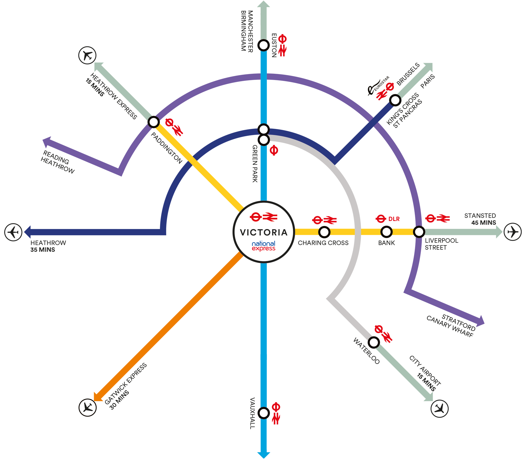 - Two minute walk to Victoria Station which benefits from Mainline train and Underground (Victoria, District and Circle Lines)